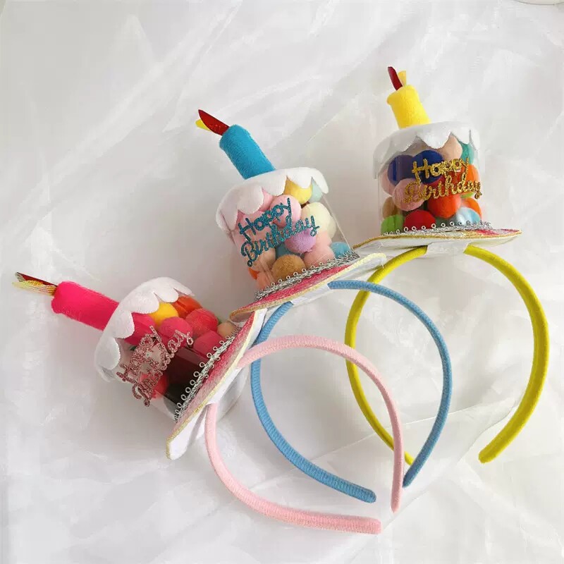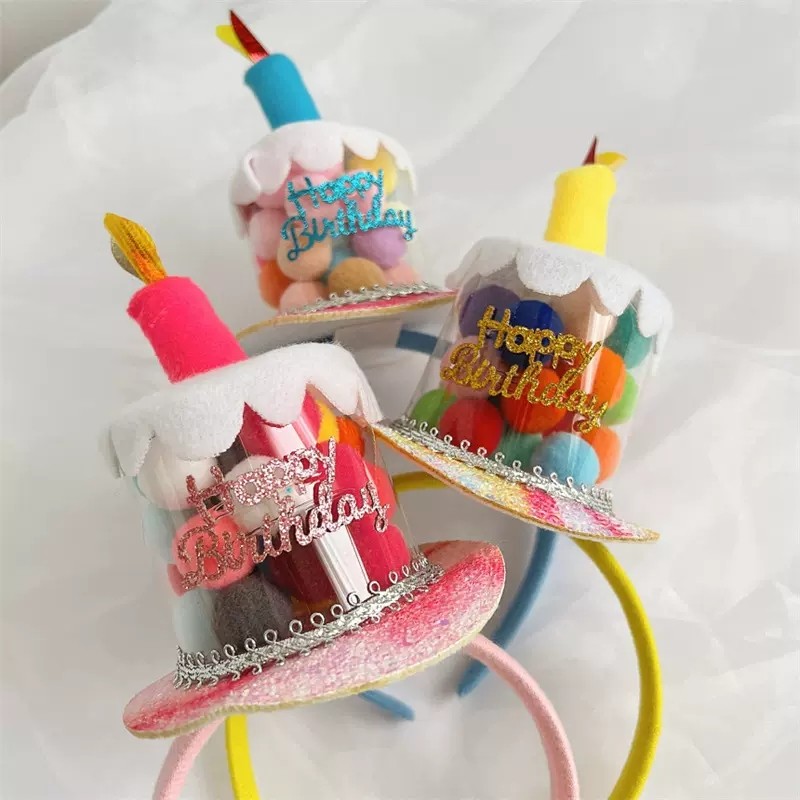 PanParty 饰 ins韩国糖果毛球生日蛋糕发箍头箍儿童拍照道具派对装