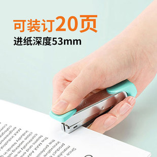 得力纽赛订书机学生用迷你小号订书机起钉器便携式 省力订书器可爱抹苔绿清雾粉 办公用手握式