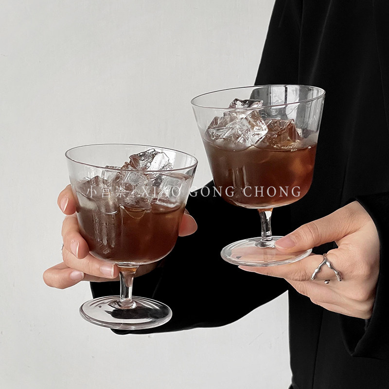 拿铁咖啡杯高脚杯高颜值甜品杯冰淇淋杯子 ins风阔口玻璃杯冰美式
