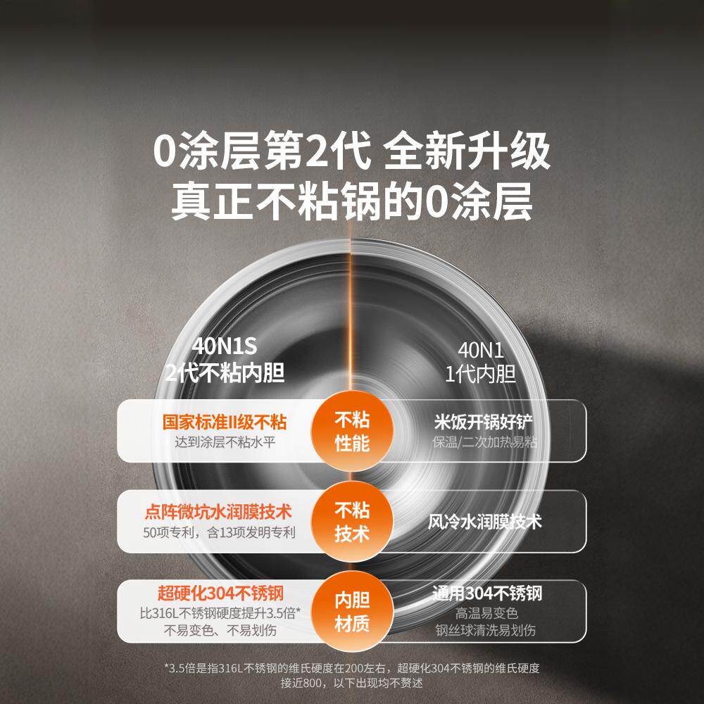 九阳电饭煲家用0涂层2代电饭锅多功能4升不锈钢球形内胆微压40N1S由