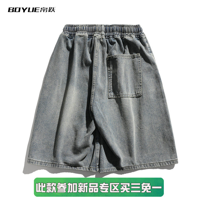 BOYUE帛跃刮烂抽绳牛仔短裤 时尚 潮牌趣味男生舒适五分裤 港风夏季由