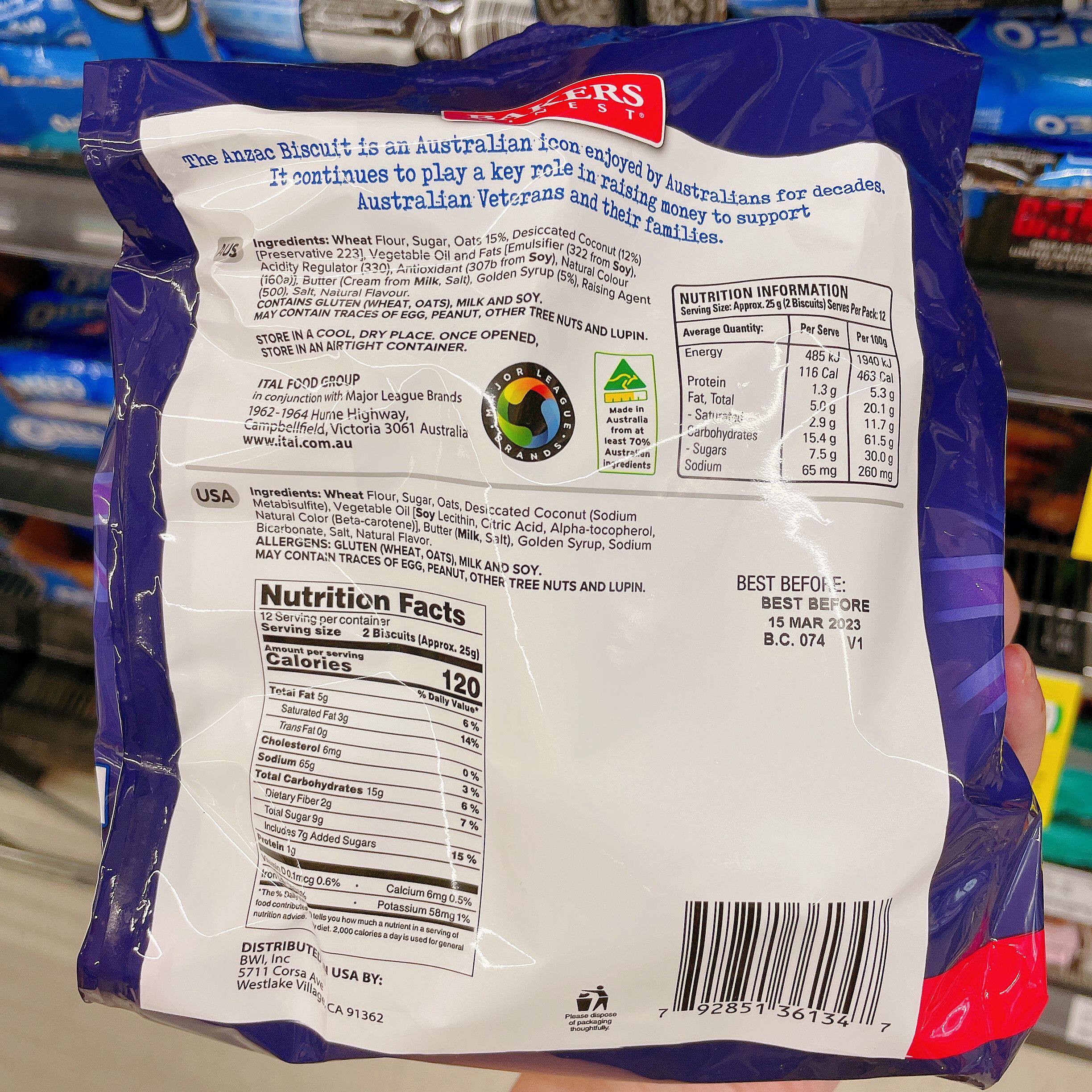 为您提供商品澳洲直邮Bakers 味道 Finest澳新军团Anzac椰子燕麦曲奇饼干家乡的详细介绍,