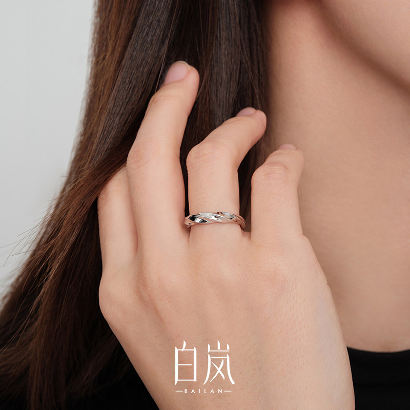 白岚麻花戒指女925银素圈手饰2023年新款 潮气质饰品QL3091由