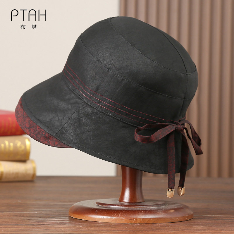 时尚 百搭可折叠防晒太阳帽女 香云纱卷边遮阳赫本渔夫帽女夏季 新款