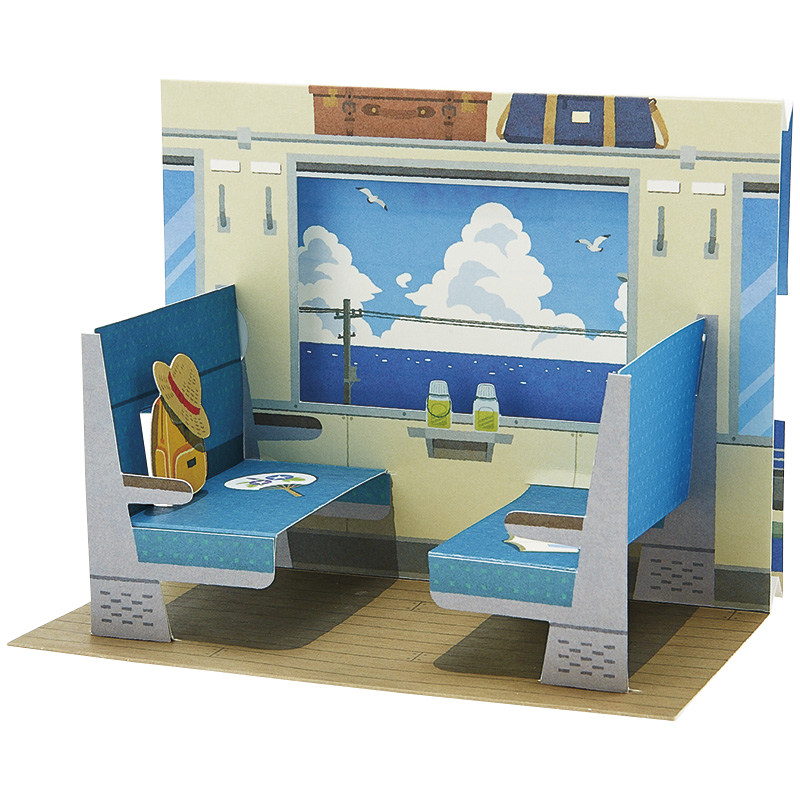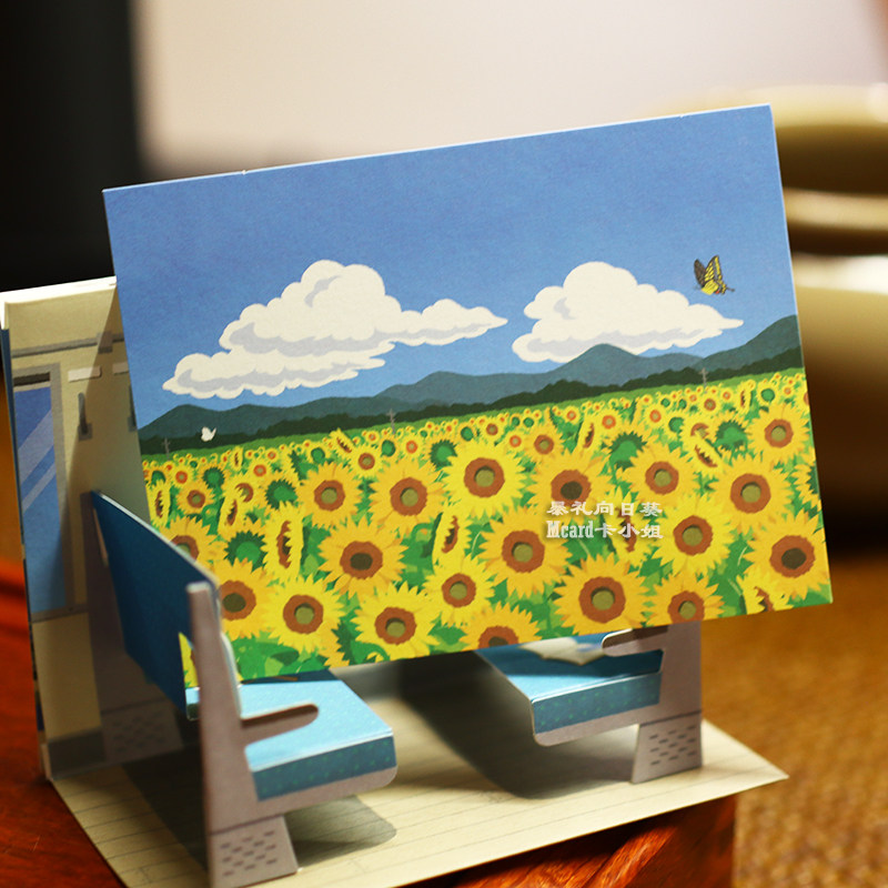 日本立体夏日车窗万用贺卡清新向日葵吃谷人电车生日礼物母亲节卡由