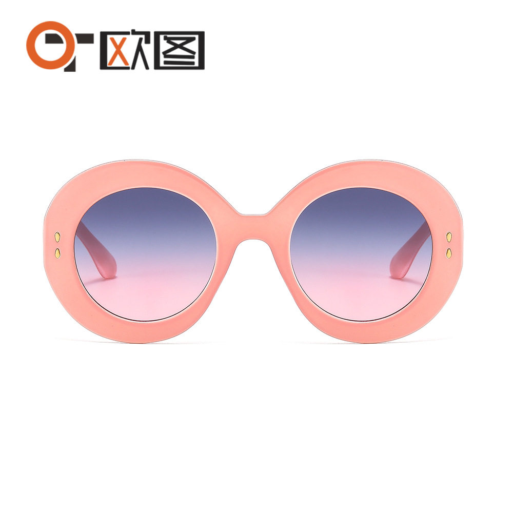 穿搭出游墨镜 M386圆型大框米钉欧美男女士太阳镜ins网红时尚