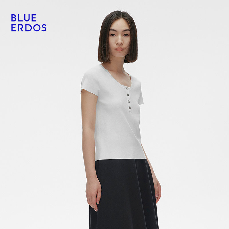 短袖 BLUE ERDOS春季 U领简约通勤修身 B255D0062 T恤女套衫由