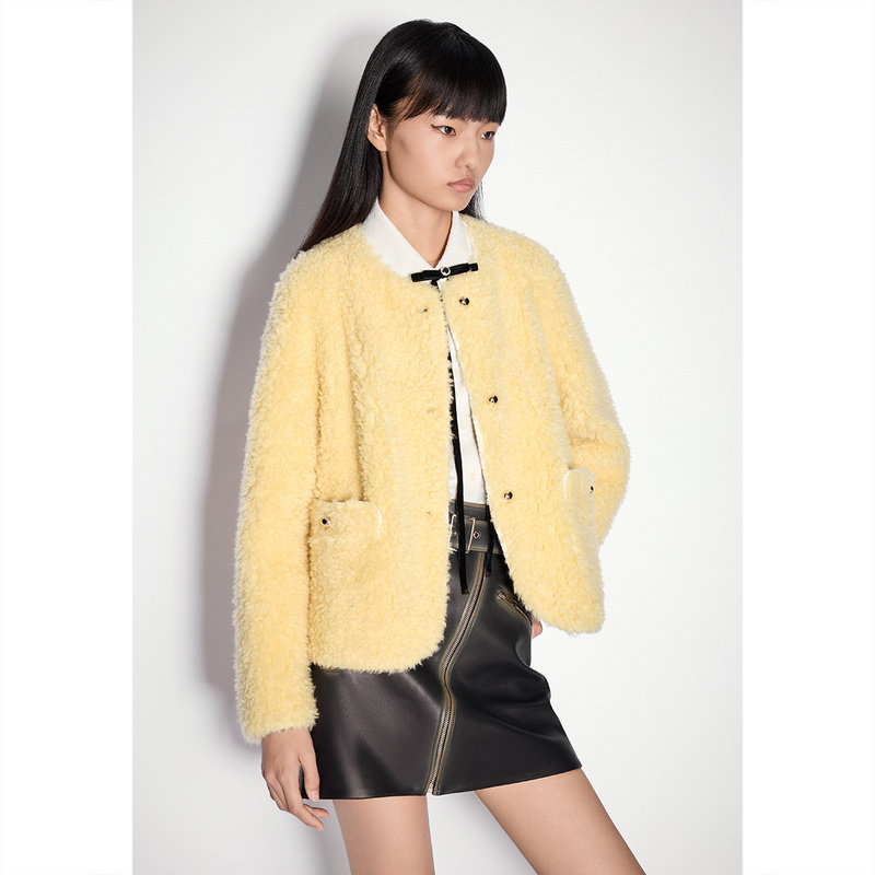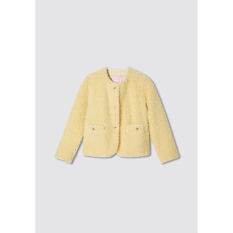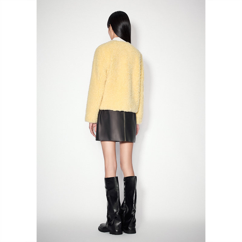 SALT.P可颜100%绵羊毛斯蒂娜圆领温柔风毛绒短外套冬款