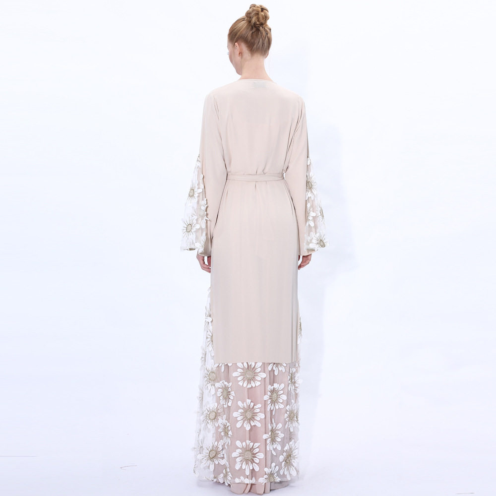 为您提供商品沙漠阿拉伯长袍白色披风网纱刺绣长袖 Caftan 连衣裙夏女印度开衫的详细介绍,