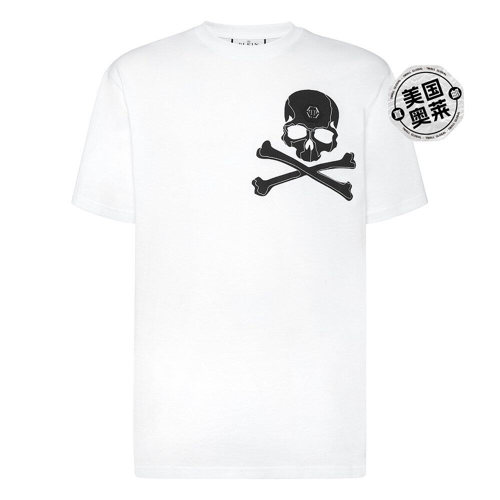 恤圆领 pleinT philipp 美国奥莱直 Skull&Bones 白色 自营由
