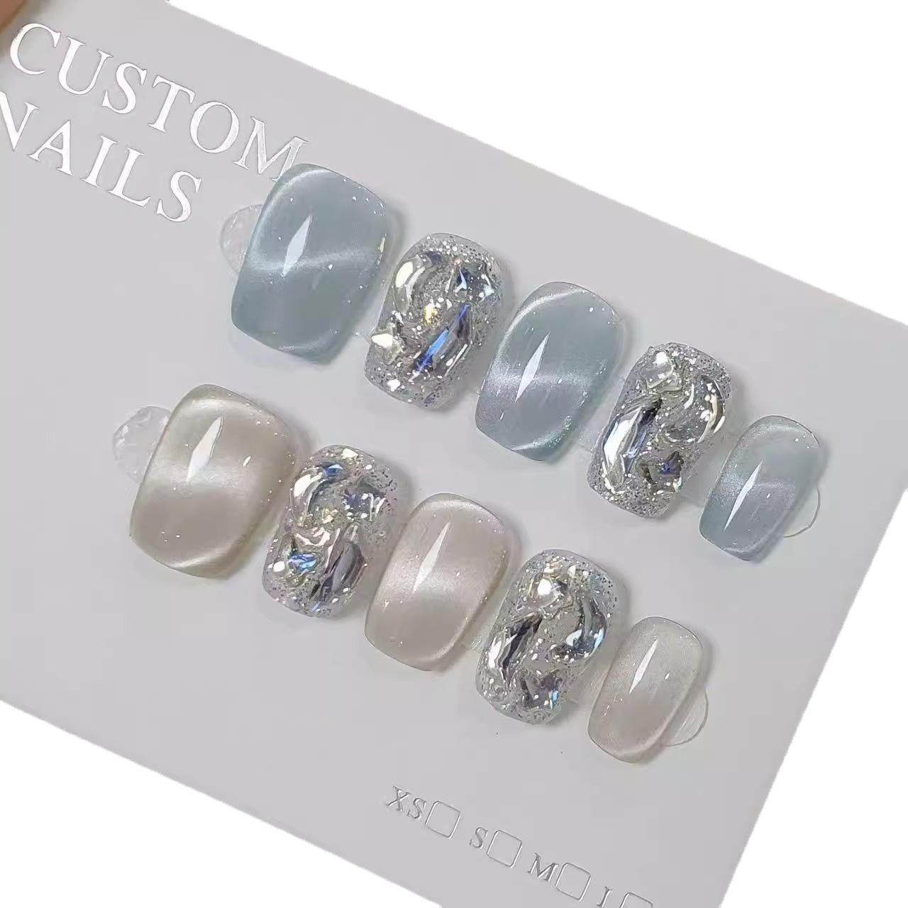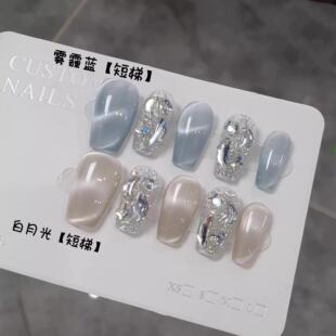 显白猫眼甲片短款 美甲指甲贴片 高级感中长款 手工穿戴甲2026新款