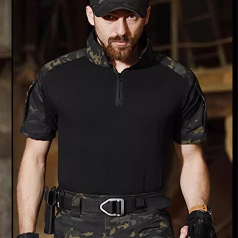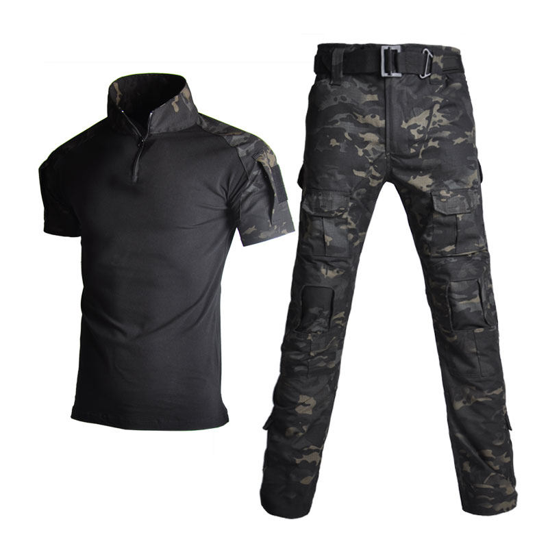 户外训练服战术套装 暗夜黑运动迷彩弹力防刮耐磨修身 蛙服套装