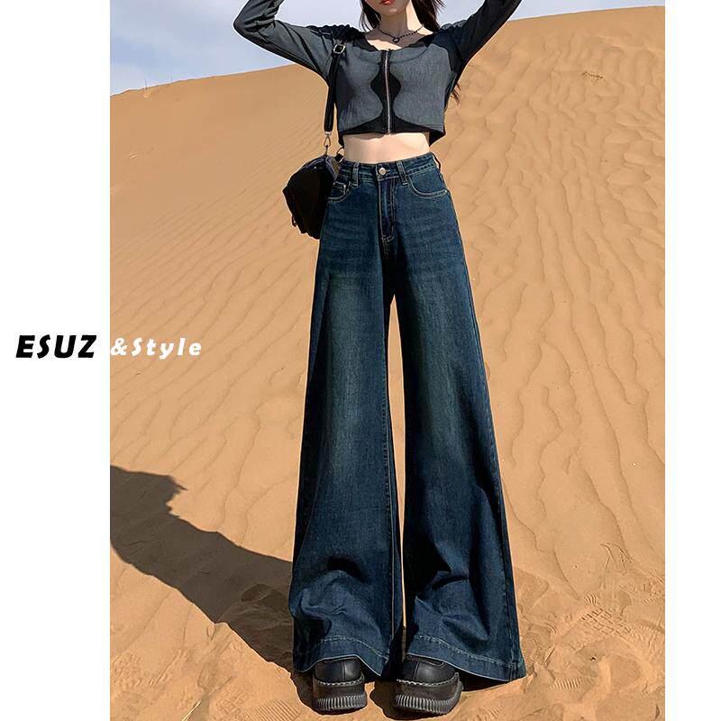 pusumede 复古阔腿牛仔裤 女宽松显瘦垂感直筒拖地长裤 摩登sense