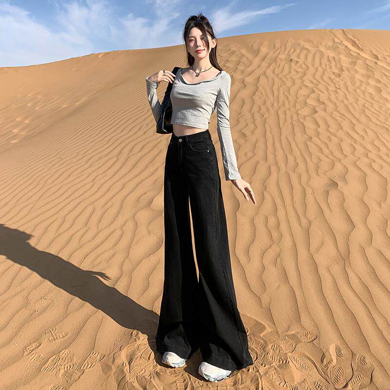 为您提供商品175高个子加长版 女2025新款 高腰显瘦宽松喇叭裤 子 黑色阔腿牛仔裤的详细介绍,