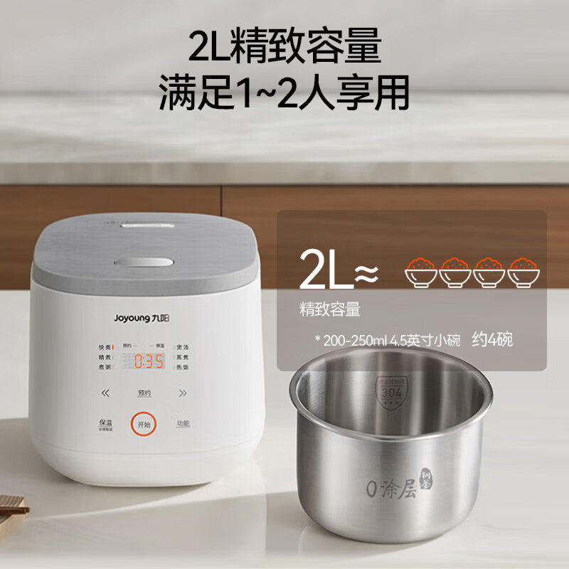 2人多功能电饭锅0涂层不锈钢内胆微压20F1001L 九阳2L电饭煲家用1由