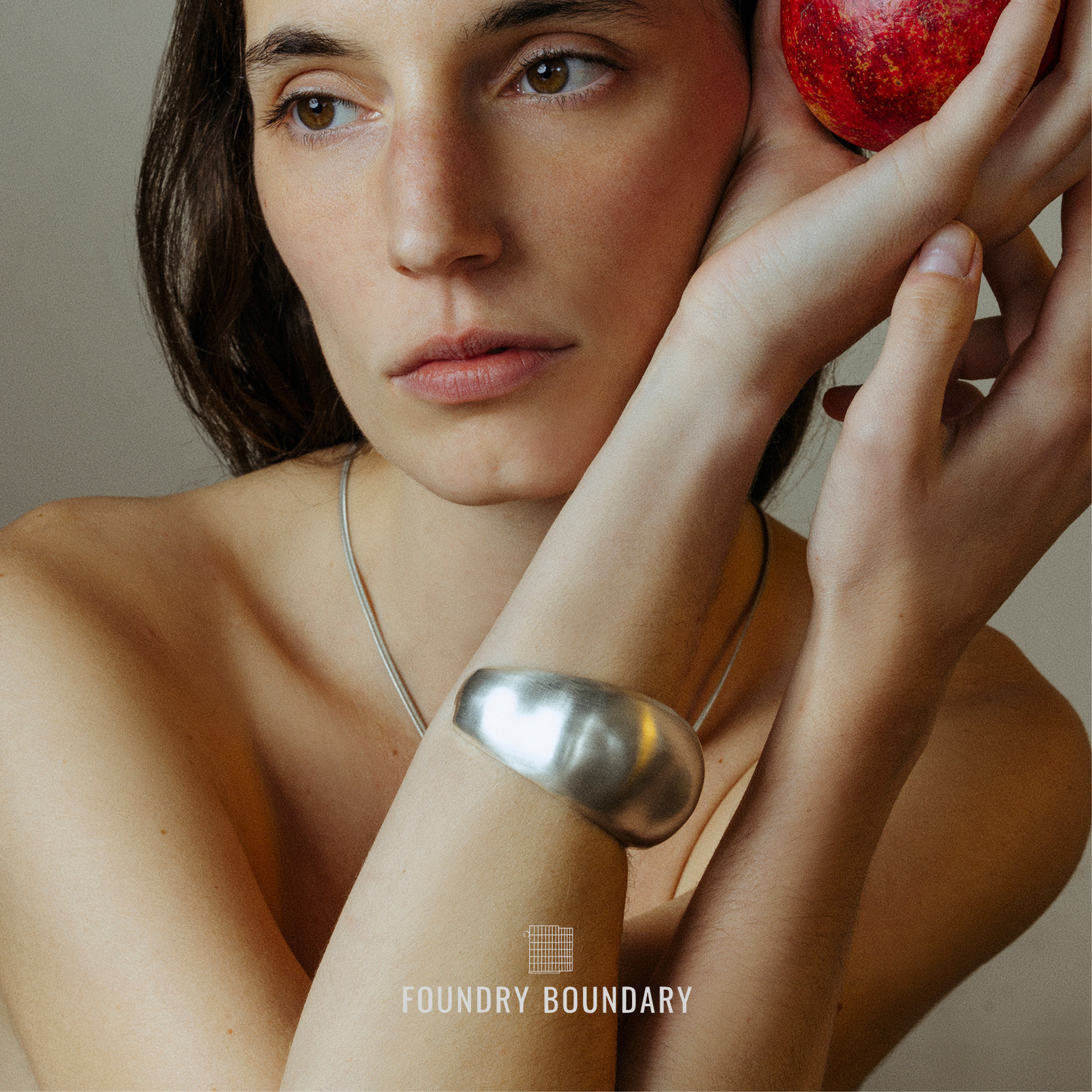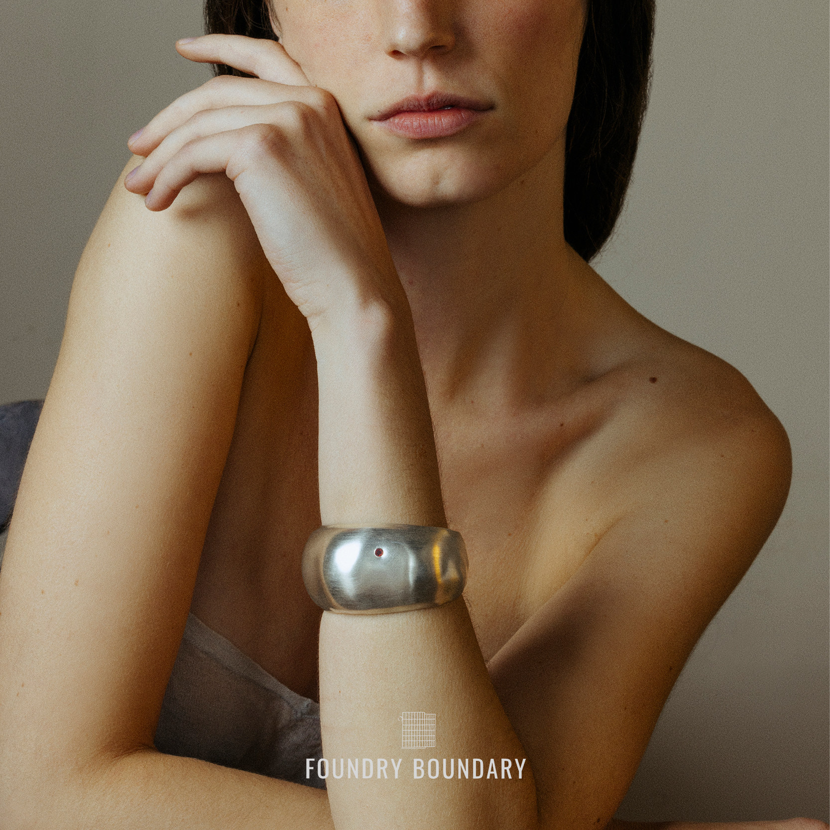 BOUNDARY石榴皮宽手镯银色 FOUNDRY由