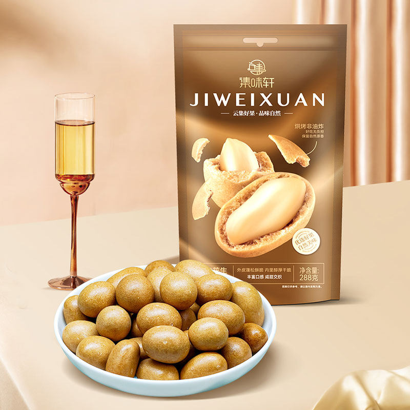 鱼皮花生288g无壳花生坚果办公室休闲零食怀旧下酒菜 集味轩袋装由