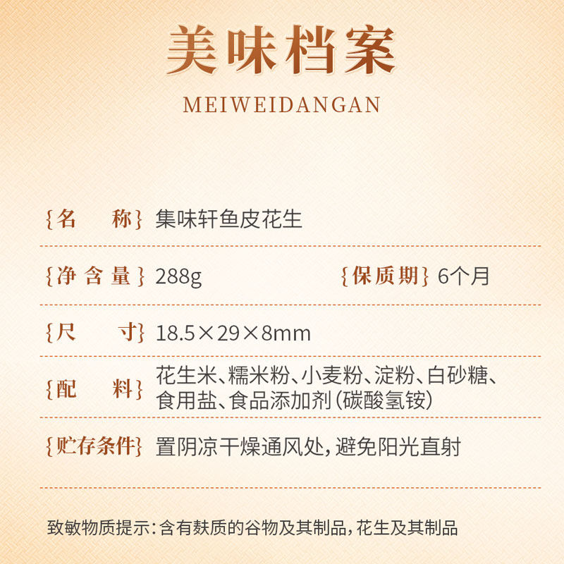 为您提供商品鱼皮花生288g无壳花生坚果办公室休闲零食怀旧下酒菜 集味轩袋装的详细介绍,