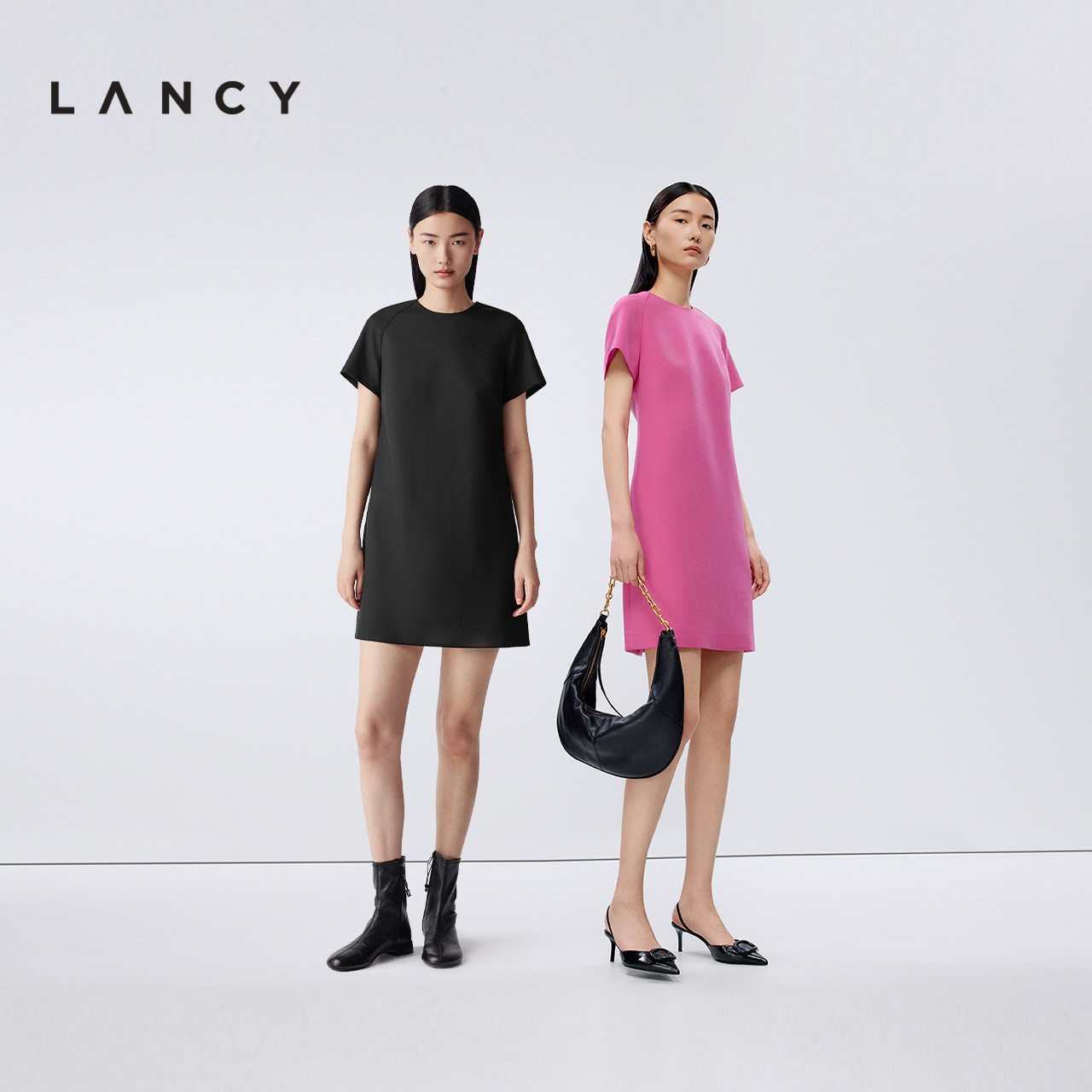 简约廓形高端设计感半袖 连衣裙气质高级感裙子 朗姿春夏新款 LANCY