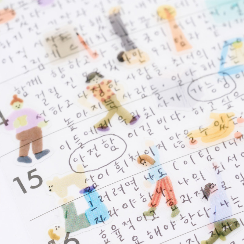 韩国analogue 饰贴 keeper人物日常周边手绘PET透明手帐贴纸素材装