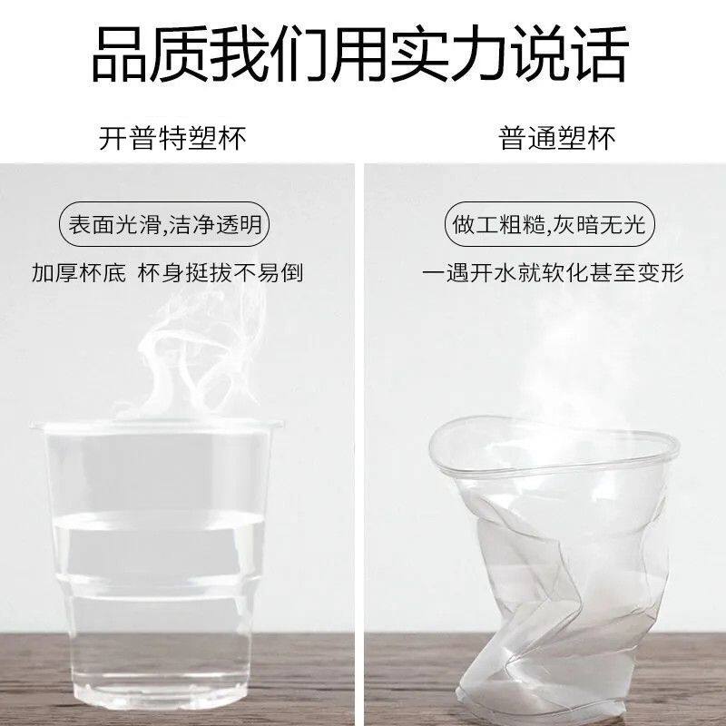 一次性杯子塑料杯200只加厚加硬开普特透塑杯明家用耐高温食品级由