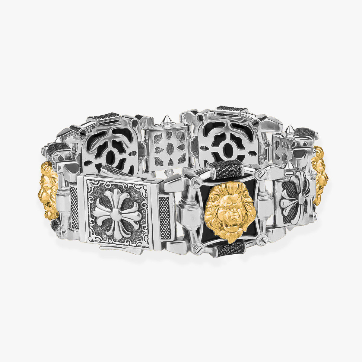 为您提供商品俄罗斯艺术珠宝14K金狮子十字花克罗镶嵌手镯男女ins925纯银的详细介绍,