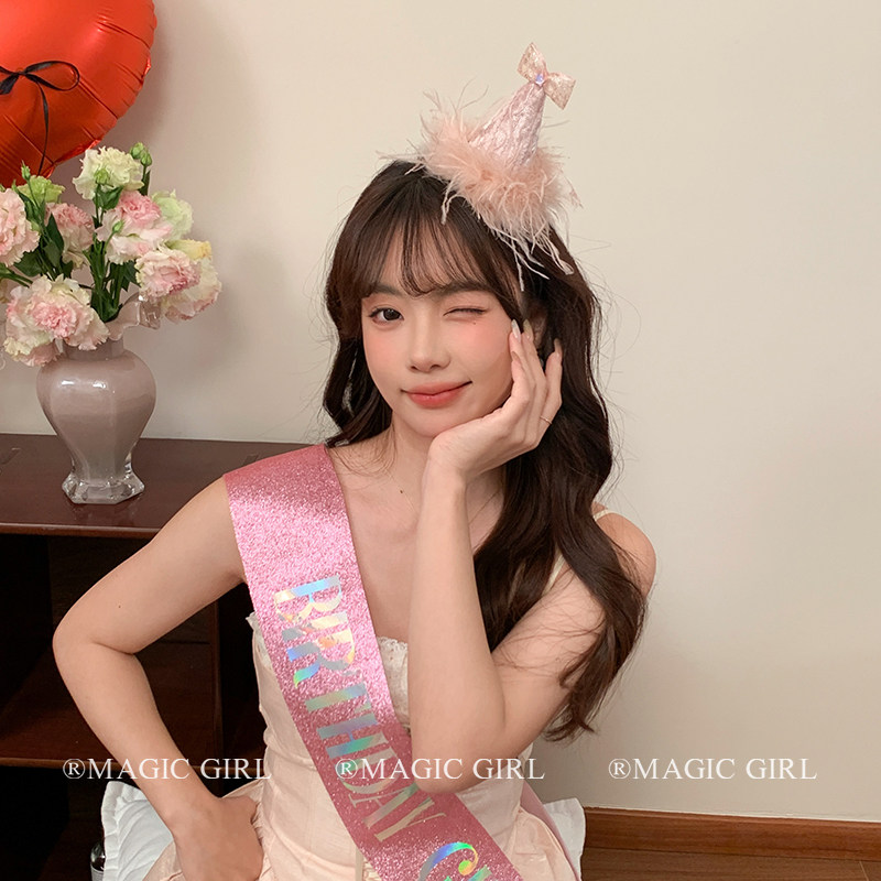 粉色生日头饰羽毛生日帽发夹少女网纱蝴蝶结发卡氛围拍照道具礼帽由