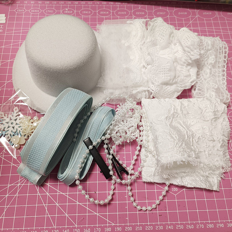 圣诞g浅蓝色粉色Lolita蕾丝蝴蝶结洛丽塔礼帽手工diy材料包P381由
