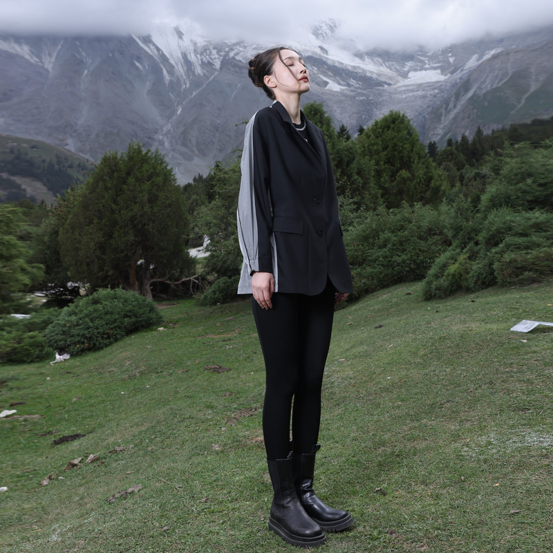 外套百搭风1241O16SX3 婉甸2025黑色拼接中长款由
