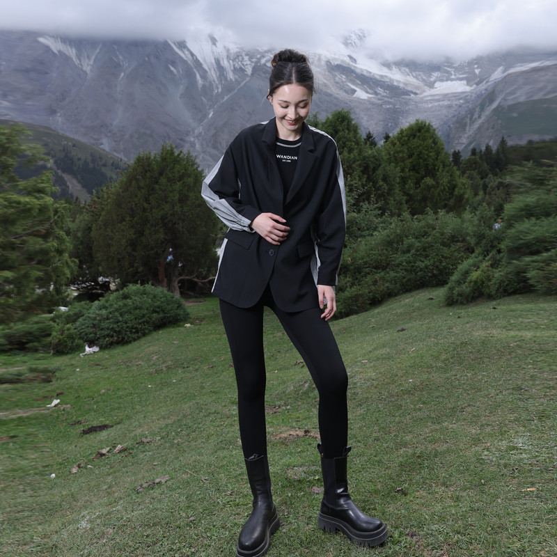 外套百搭风1241O16SX3 婉甸2025黑色拼接中长款