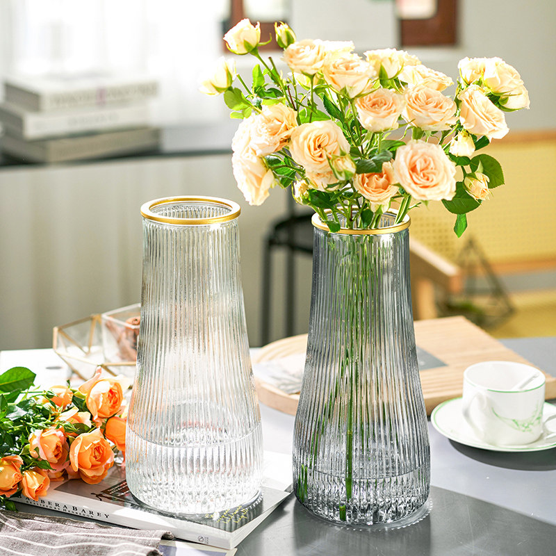 轻奢玻璃花瓶摆件客厅插花高级感透明水养插花水培鲜花富贵竹专用