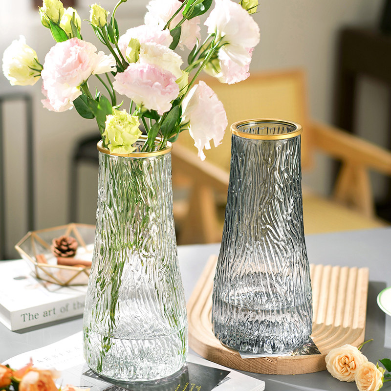 花瓶摆件客厅插花冰川玻璃透明轻奢高级感百合玫瑰水养鲜花专用高