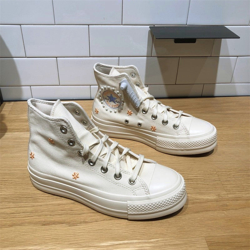 CONVERSE匡威All Lift女子刺绣花卉高帮厚底鞋 帆布鞋 A05972C Star