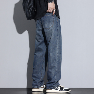 高街复古宽松直筒长裤 Kuvine春秋款 子 美式 春季 水洗阔腿牛仔裤 男款