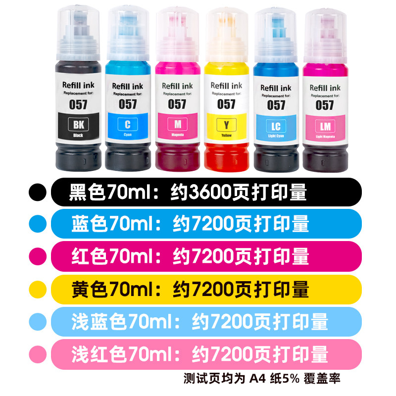 墨仓式 适用爱普生057墨水epson L8050 L18050染料墨水多功能一体式 六色照片不褪色防光耐晒颜料墨水非原装