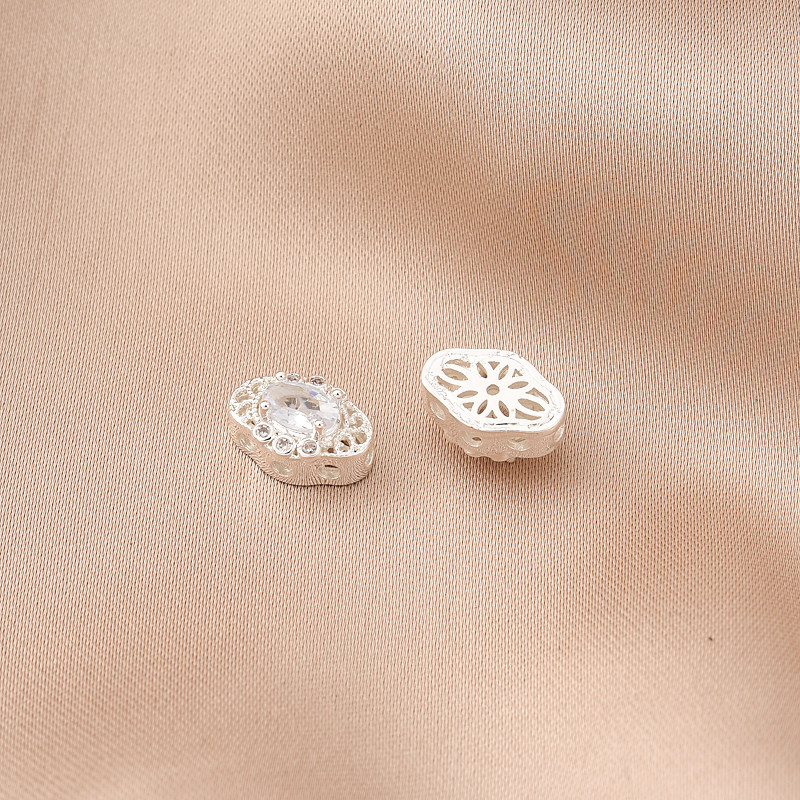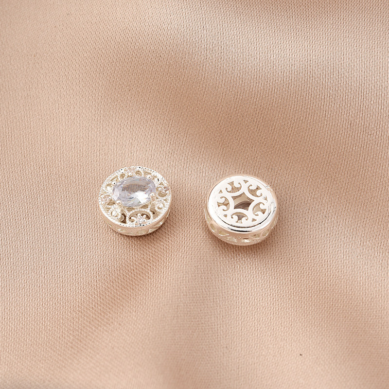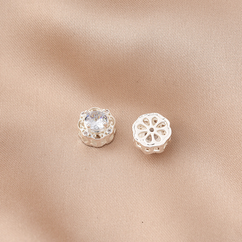 高保铜镀厚银镶锆石菱形8通隔珠手工diy手链圆形串珠转运珠材料由