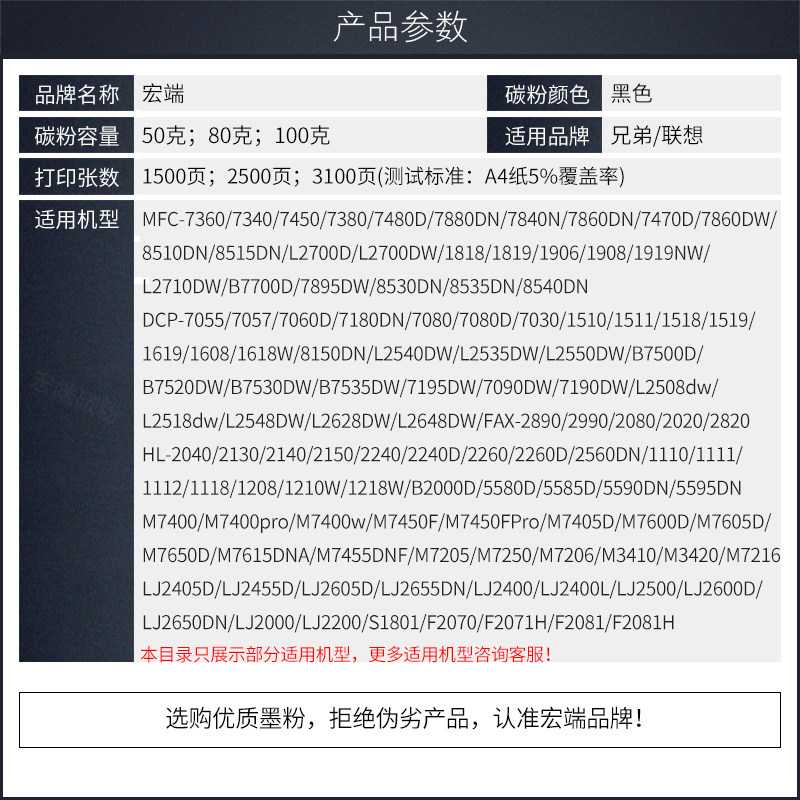 7206 7180DN 7080D mfc7360 TN1035 7380 1618W 适用兄弟打印机通用碳粉DCP 7605墨粉 TN1000 联想M7400 7057