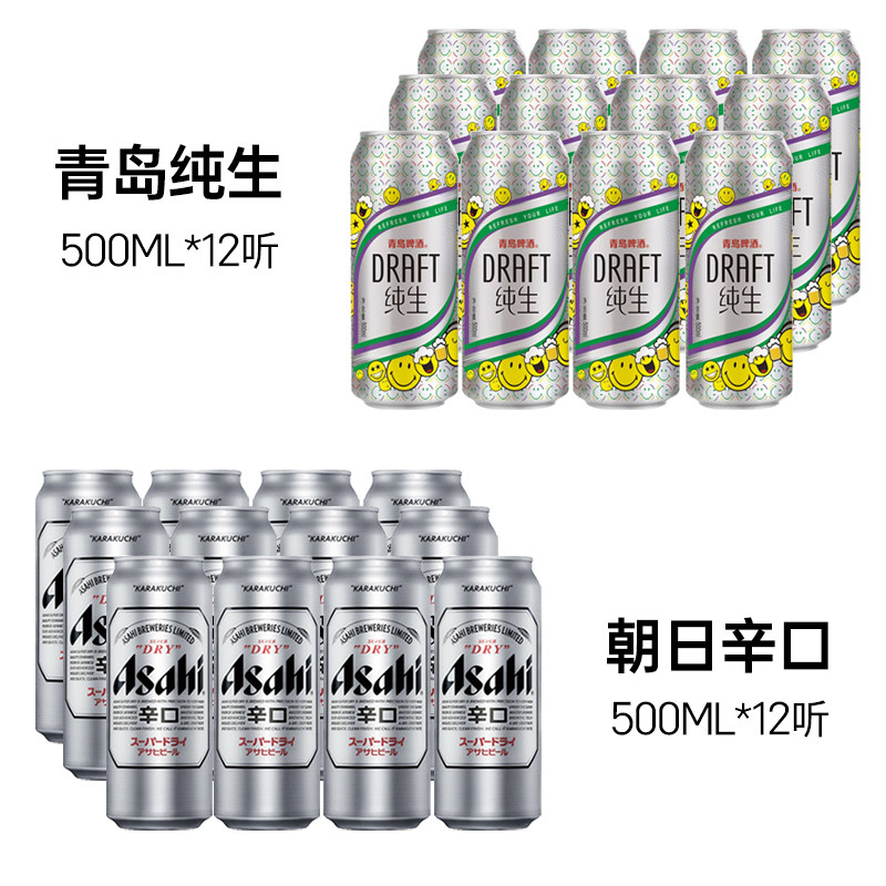 青岛啤酒纯生8度500ml 国产多省 包邮 12听朝日啤酒12罐整箱罐装由