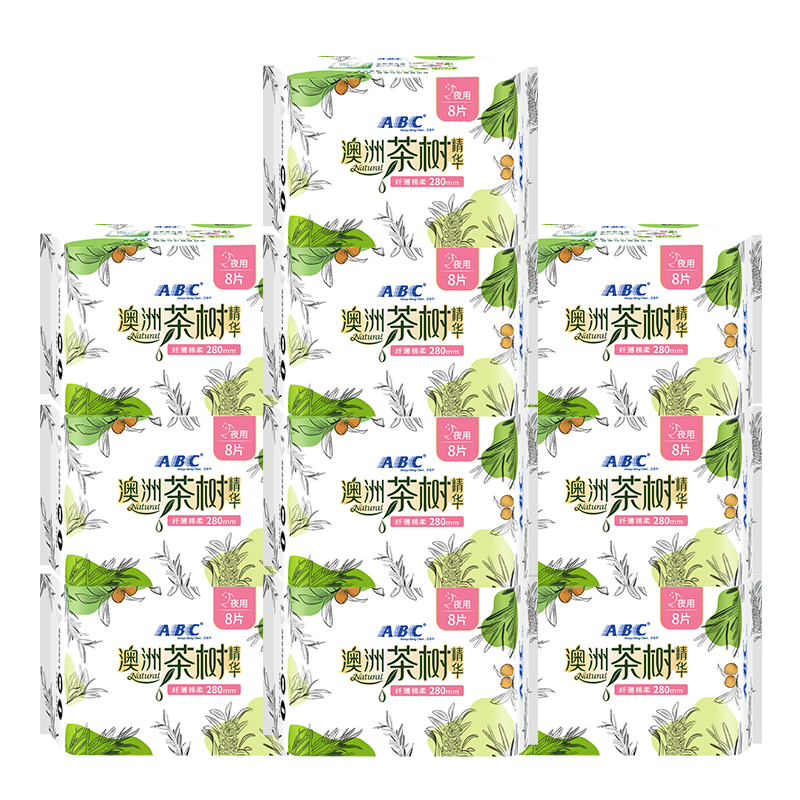 为您提供商品ABC卫生巾女澳洲茶树抑菌夜用280mm纤薄姨妈组合装 整箱批官网正品的详细介绍,