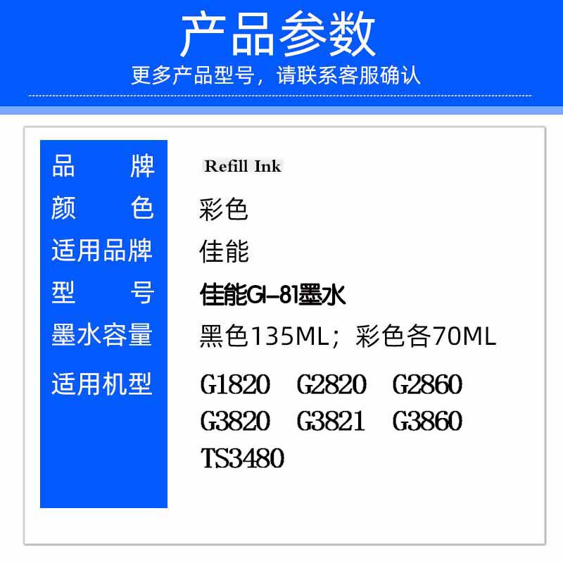 为您提供商品佳能GI G3860G3821G3820G2860G2820G183 81进口墨水适用Canon的详细介绍,