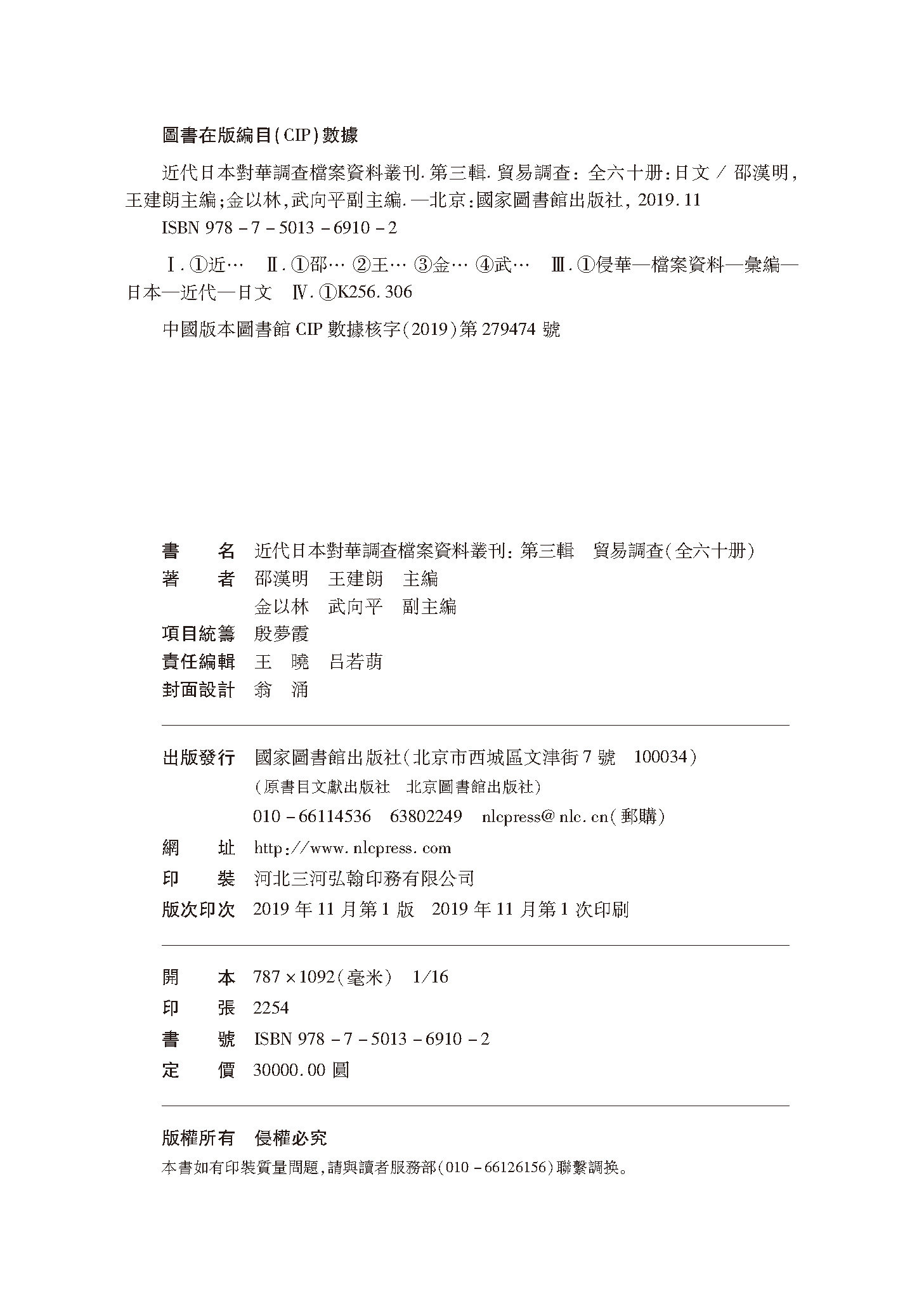 为您提供商品全60册国家图书馆出版 正版 社9787501369102 贸易调查 第三辑 现货精装 近代日本对华调查档案资料丛刊的详细介绍,