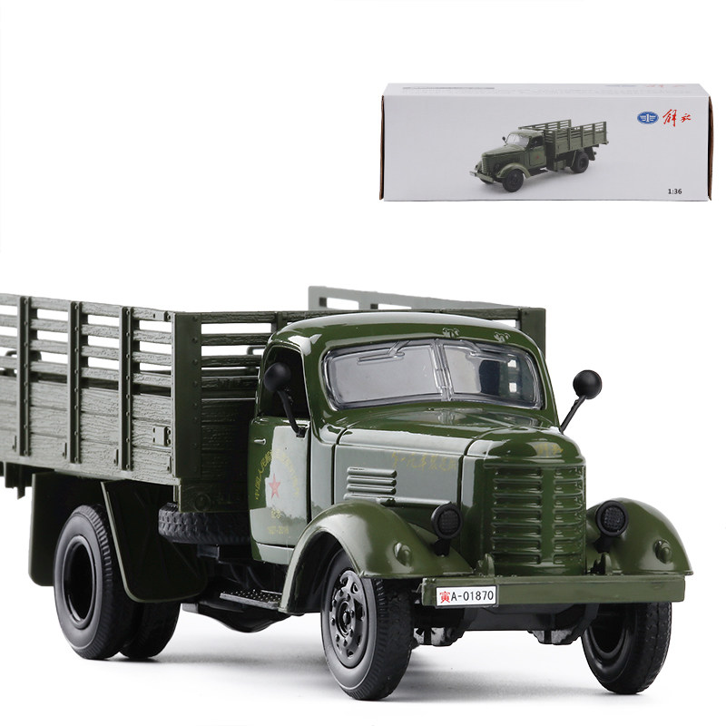 36一汽解放卡车CA10声光回力开门合金小汽车军事车模型玩具 仿真1由
