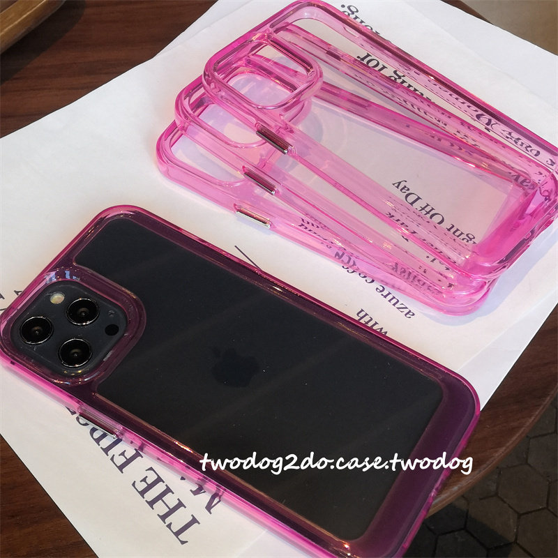 16玫红透亮高清玫粉透明边框13粉色搭配凹槽设计15promax亚克力手机壳11promax7pXR潮12独立银色按键17air