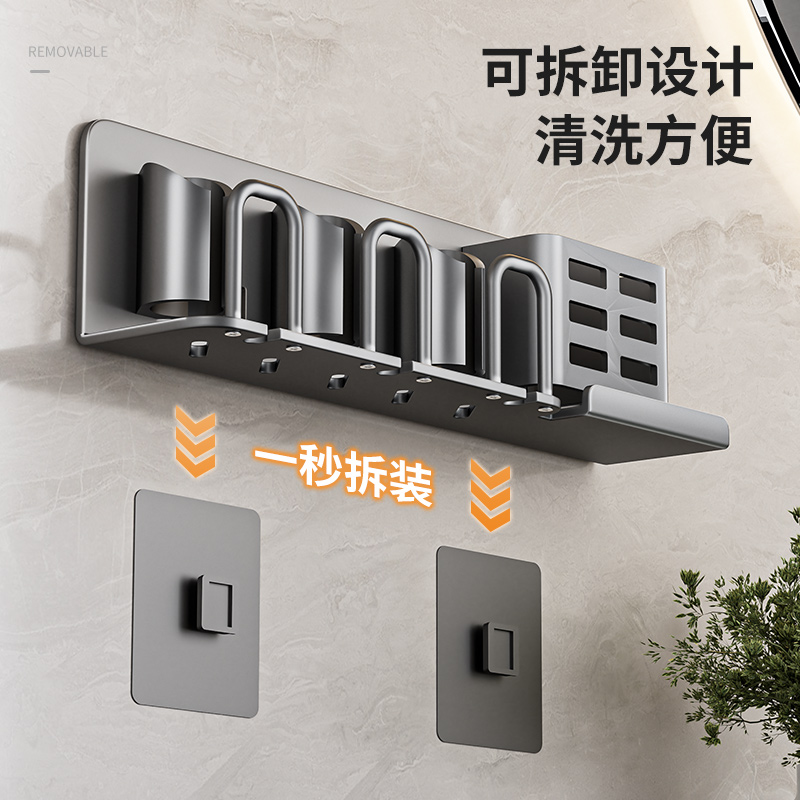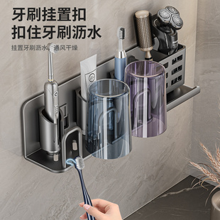 电动牙刷架 牙刷置物架免打孔枪灰卫生间浴室漱口杯收纳家用壁挂式由