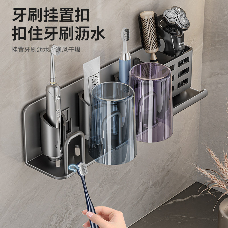 电动牙刷架 牙刷置物架免打孔枪灰卫生间浴室漱口杯收纳家用壁挂式