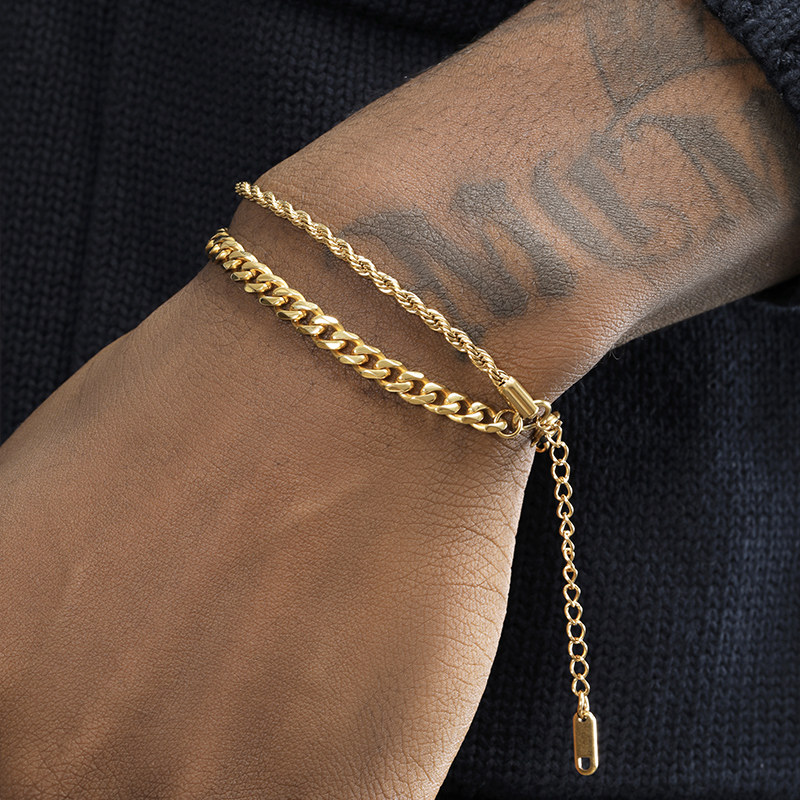 GRGR 18K金色古巴麻花叠戴手链男女嘻哈欧美流行双层手环情侣同款由