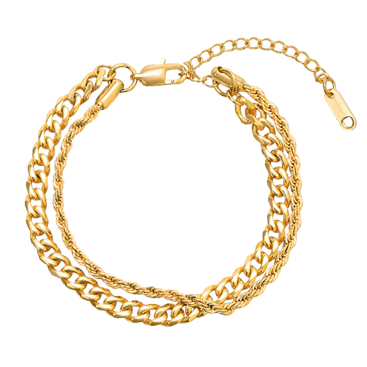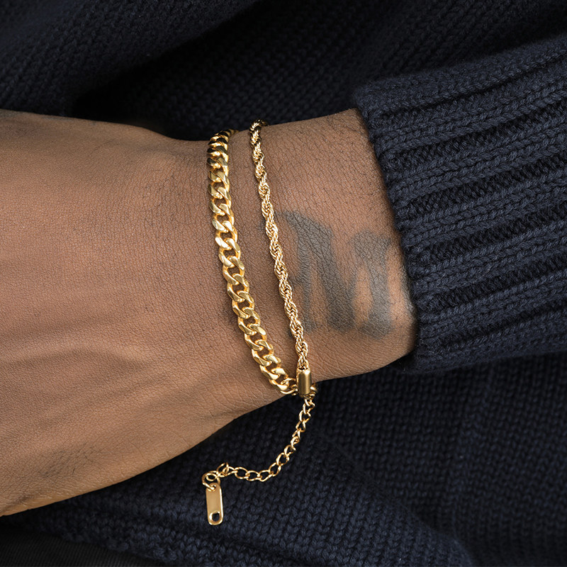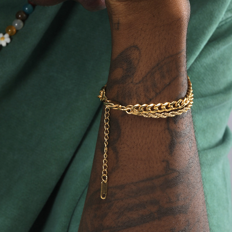 GRGR 18K金色古巴麻花叠戴手链男女嘻哈欧美流行双层手环情侣同款