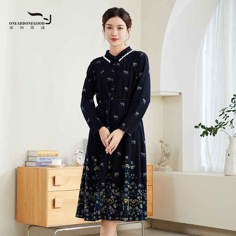 长袖 连衣裙女ESDL001 文艺舒适显瘦收腰时尚 依伽依佳2023秋冬新款