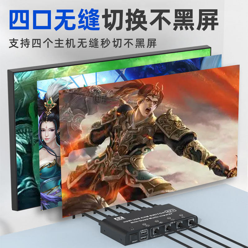 HDMI分屏器4K屏幕画面分割器四进一出KVM无缝切换器DNF游戏电脑USB键鼠同步一体机穿屏操作4进1出切换不黑屏