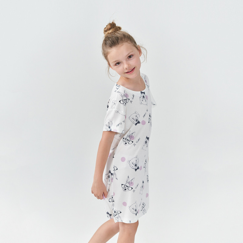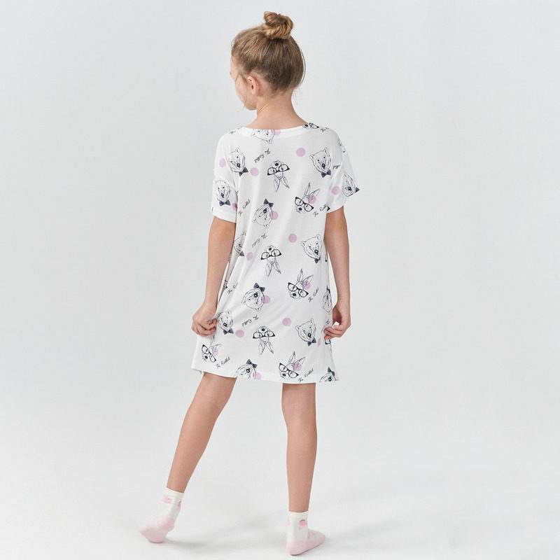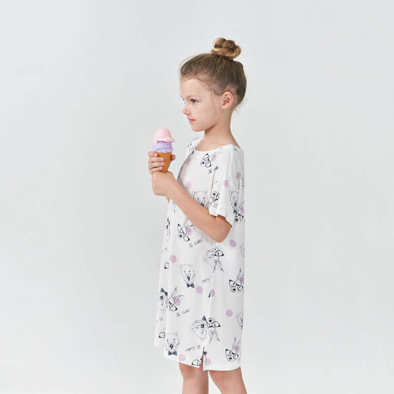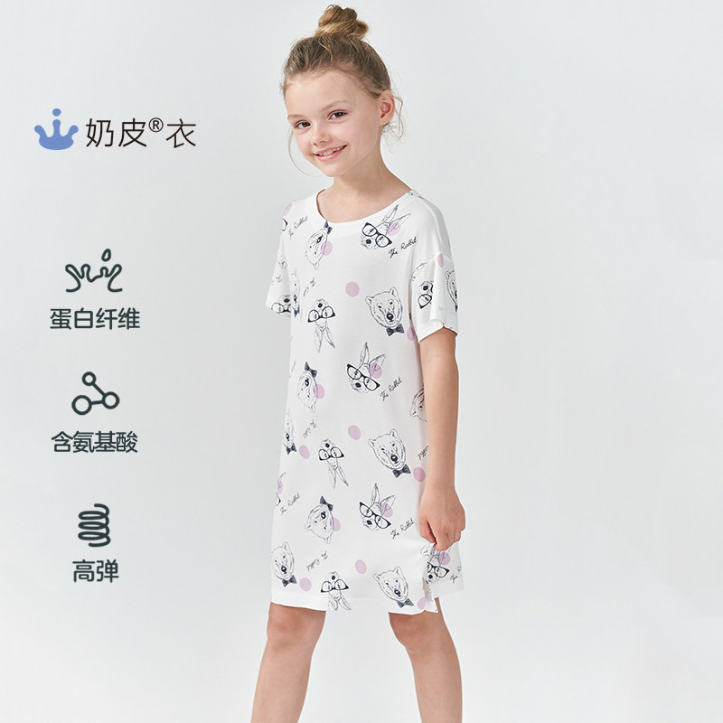 久岁伴儿童睡裙女童短袖 春夏莫代尔睡衣中大童家居服连衣裙 薄款